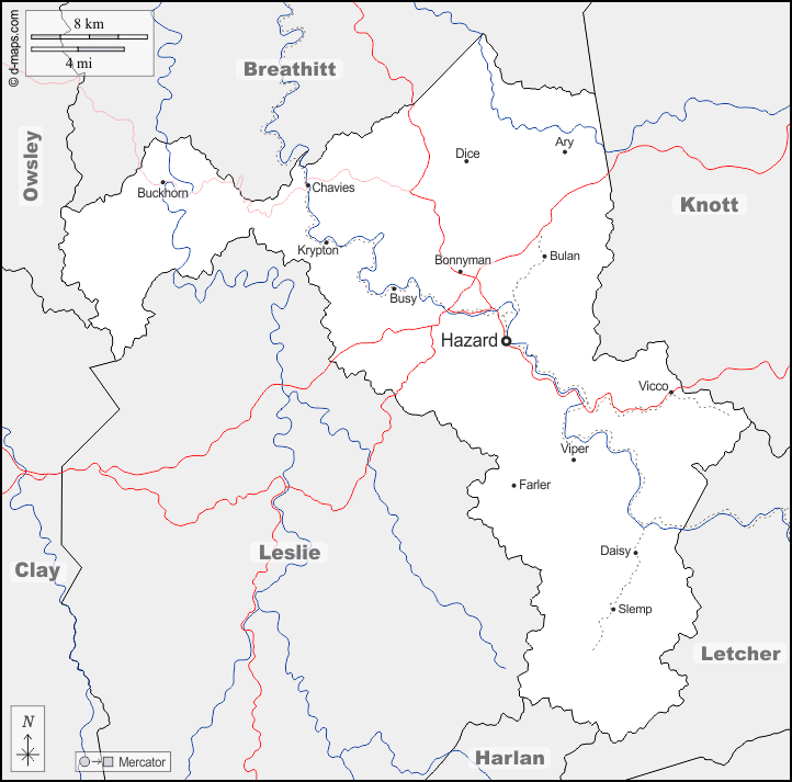 d-maps > संयुक्त राज्य > केंटुकी > पेरी > सीमाओं, जल-सर्वेक्षण, मुख्य शहरों, सड़कों, नाम