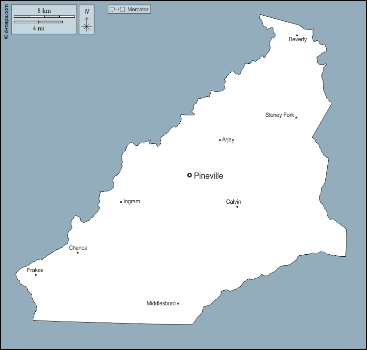 d-maps > संयुक्त राज्य > केंटुकी > बेल > बाह्यरेखा, मुख्य शहरों, नाम