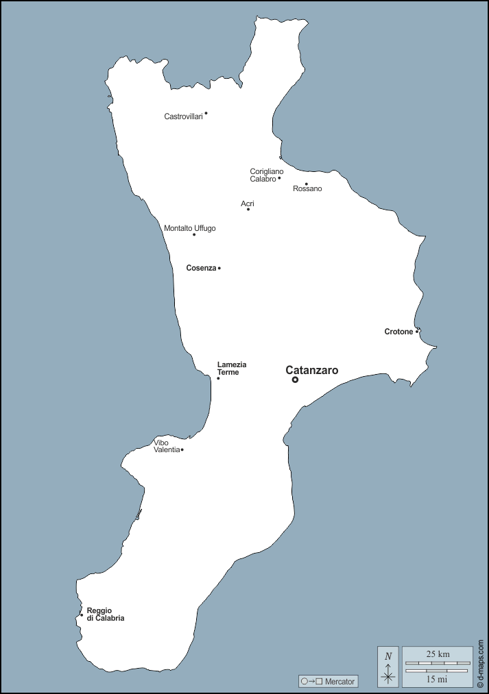d-maps > यूरोप > इटली > कालाब्रिया > बाह्यरेखा, मुख्य शहरों, नाम