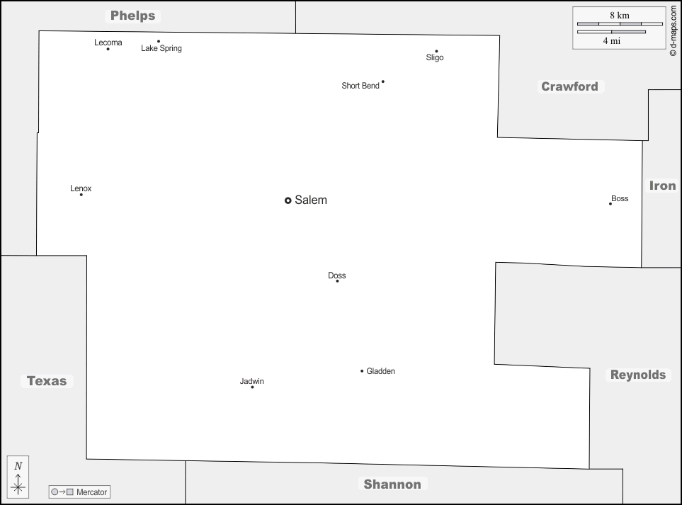 d-maps > संयुक्त राज्य > मिज़ूरी > सेंध > सीमाओं, मुख्य शहरों, नाम