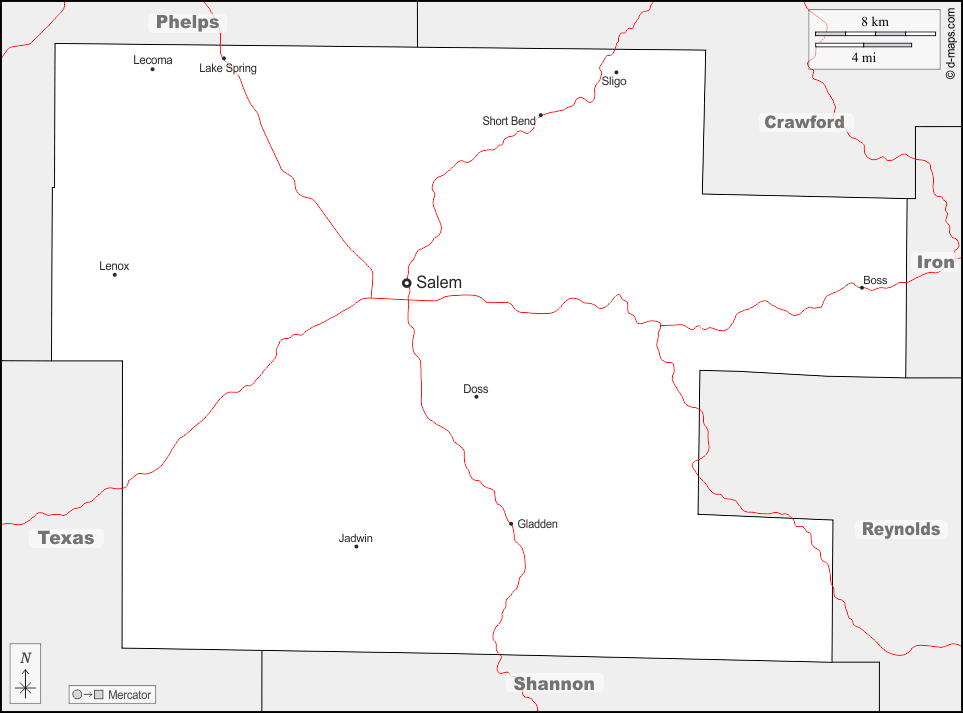 d-maps > संयुक्त राज्य > मिज़ूरी > सेंध > सीमाओं, मुख्य शहरों, सड़कों, नाम