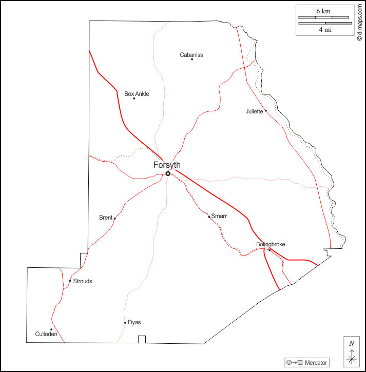 d-maps > संयुक्त राज्य > जॉर्जिया > मुनरो > बाह्यरेखा, मुख्य शहरों, सड़कों, नाम, सफेद