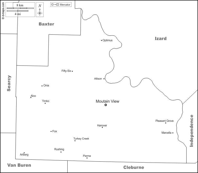 d-maps > संयुक्त राज्य > आर्कन्सा > पत्थर > सीमाओं, मुख्य शहरों, नाम, सफेद