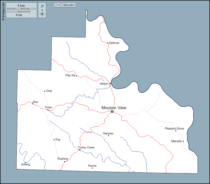 d-maps > संयुक्त राज्य > आर्कन्सा > पत्थर > बाह्यरेखा, जल-सर्वेक्षण, मुख्य शहरों, सड़कों, नाम