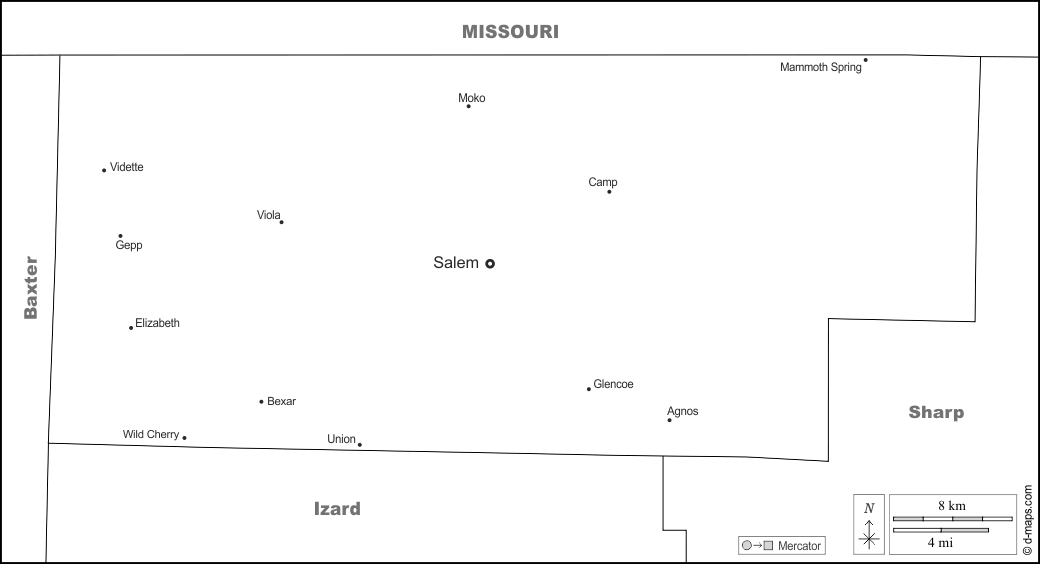 d-maps > संयुक्त राज्य > आर्कन्सा > फुल्टन > सीमाओं, मुख्य शहरों, नाम, सफेद