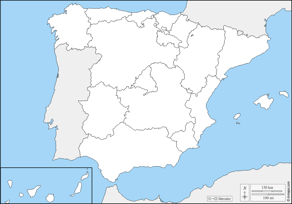 d-maps > यूरोप > स्पेन > स्पेन > सीमाओं, स्वायत्त समुदायों