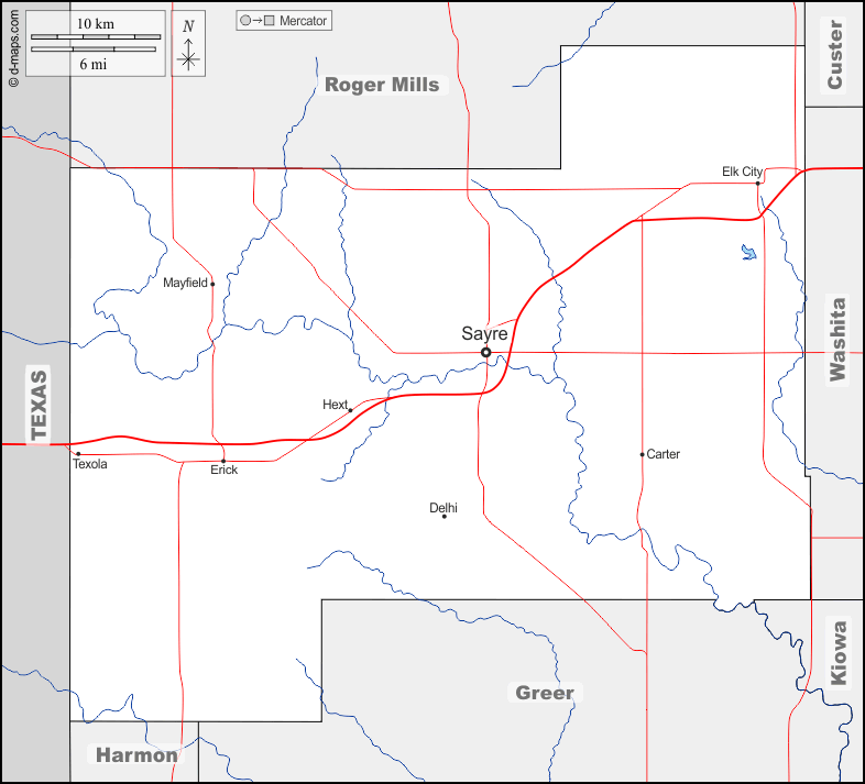 d-maps > संयुक्त राज्य > ओकलाहोमा > बेखम > सीमाओं, जल-सर्वेक्षण, मुख्य शहरों, सड़कों, नाम