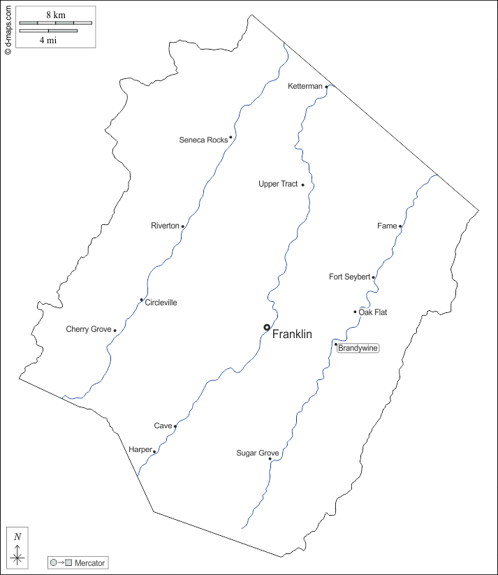d-maps > संयुक्त राज्य > वेस्ट वर्जीनिया > पेंडलटन > बाह्यरेखा, जल-सर्वेक्षण, मुख्य शहरों, नाम, सफेद