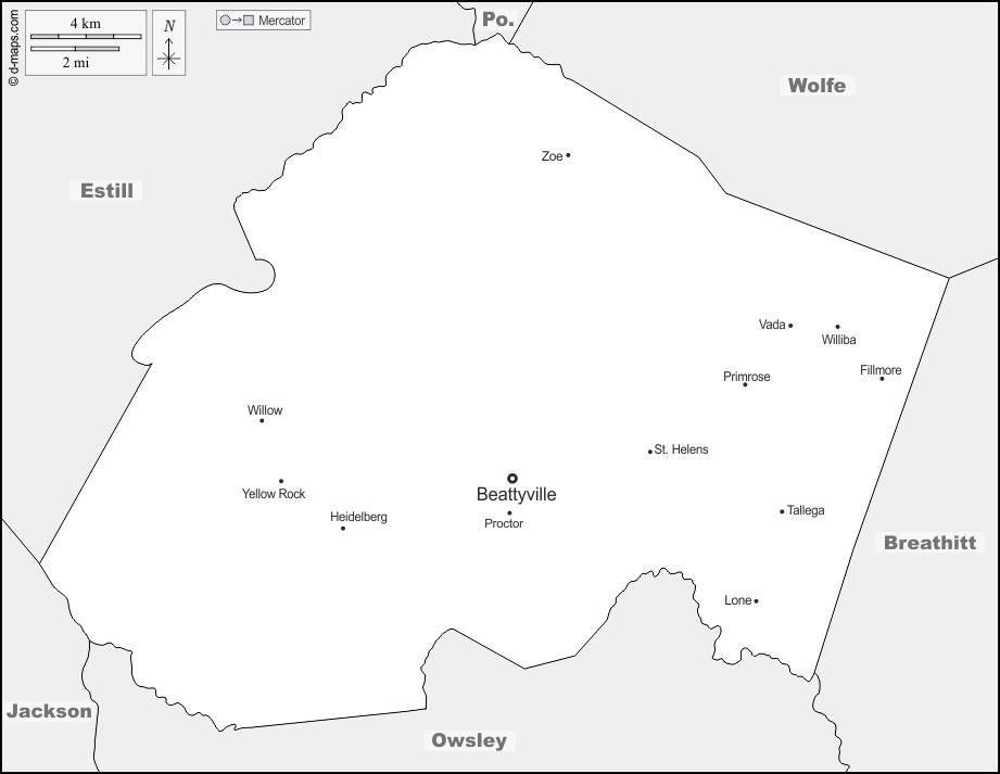 d-maps > संयुक्त राज्य > केंटुकी > ली > सीमाओं, मुख्य शहरों, नाम