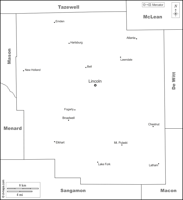 d-maps > संयुक्त राज्य > इलिनॉय > लोगान > सीमाओं, मुख्य शहरों, नाम, सफेद