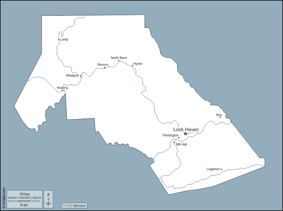 d-maps > संयुक्त राज्य > पेंसिल्वेनिया > क्लिंटन > बाह्यरेखा, जल-सर्वेक्षण, मुख्य शहरों, नाम