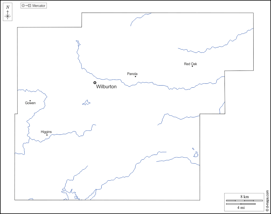 d-maps > संयुक्त राज्य > ओकलाहोमा > ओक्लाहोमा पूर्व > बाह्यरेखा, जल-सर्वेक्षण, मुख्य शहरों, नाम, सफेद
