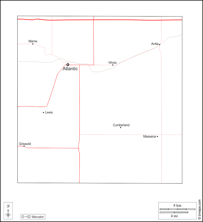 d-maps > संयुक्त राज्य > आयोवा > आयोवा पश्चिम > बाह्यरेखा, मुख्य शहरों, सड़कों, नाम, सफेद