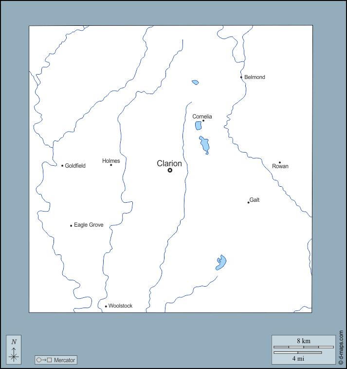 d-maps > संयुक्त राज्य > आयोवा > राइट > बाह्यरेखा, जल-सर्वेक्षण, मुख्य शहरों, नाम