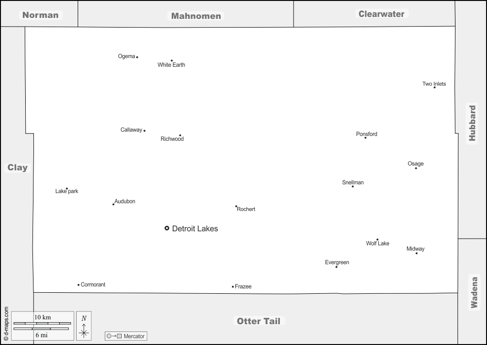 d-maps > संयुक्त राज्य > मिनेसोटा > बेकर > सीमाओं, मुख्य शहरों, नाम