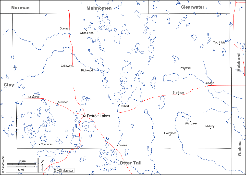 d-maps > संयुक्त राज्य > मिनेसोटा > बेकर > सीमाओं, जल-सर्वेक्षण, मुख्य शहरों, सड़कों, नाम, सफेद