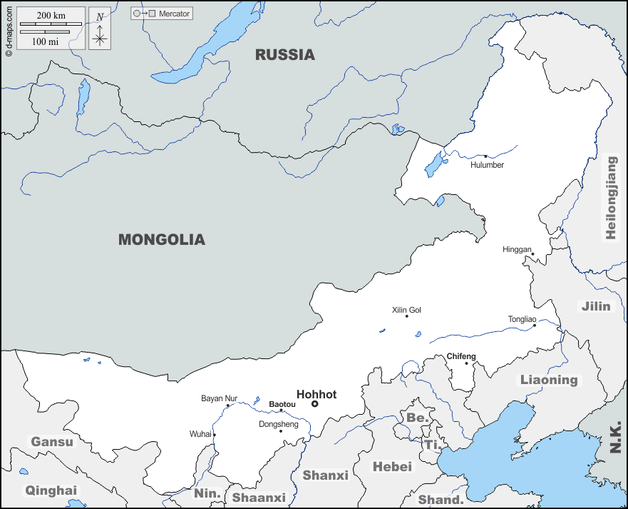 d-maps > एशिया > चीनी जनवादी गणराज्य > भीतरी मंगोलिया > सीमाओं, जल-सर्वेक्षण, मुख्य शहरों, नाम