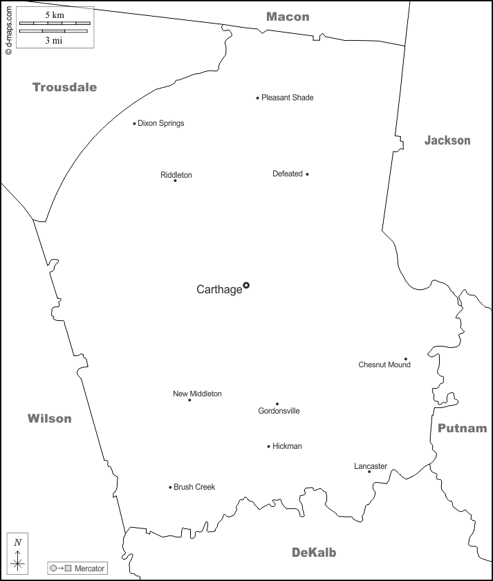 d-maps > संयुक्त राज्य > टेनेसी > स्मिथ > सीमाओं, मुख्य शहरों, नाम, सफेद