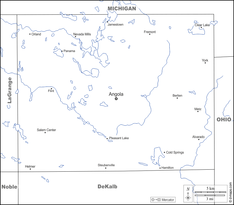 d-maps > संयुक्त राज्य > इंडियाना > इंडियाना नॉर्थ ईस्ट > सीमाओं, जल-सर्वेक्षण, मुख्य शहरों, नाम, सफेद