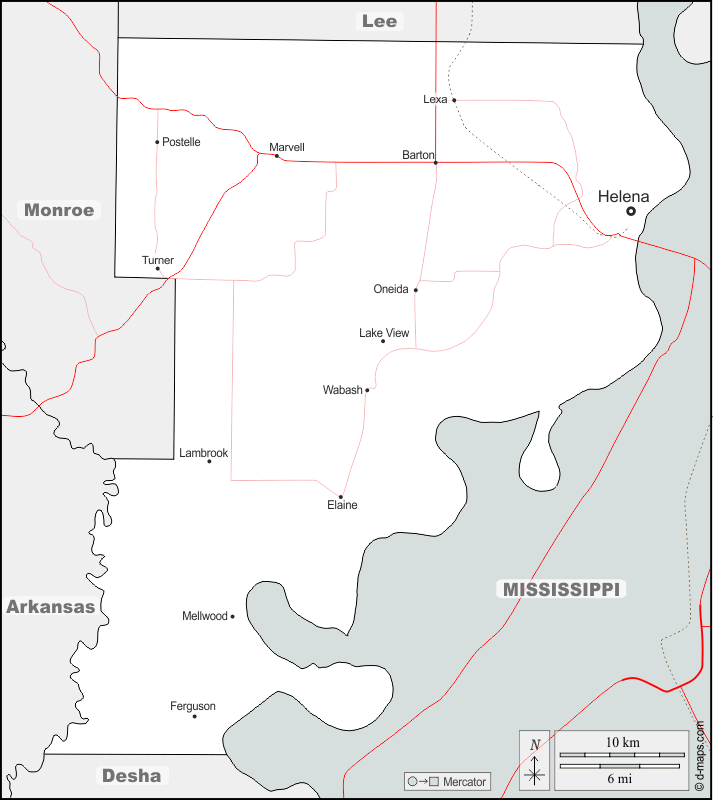 d-maps > संयुक्त राज्य > आर्कन्सा > फिलिप्स > सीमाओं, मुख्य शहरों, सड़कों, नाम