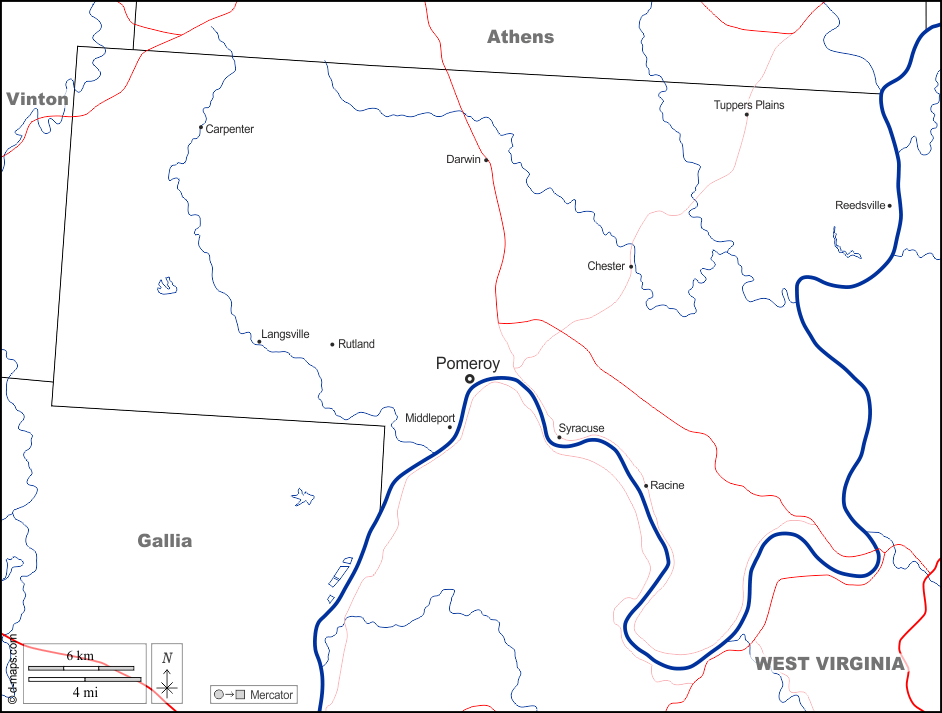 d-maps > संयुक्त राज्य > ओहायो > ओहियो साउथ > सीमाओं, जल-सर्वेक्षण, मुख्य शहरों, सड़कों, नाम, सफेद
