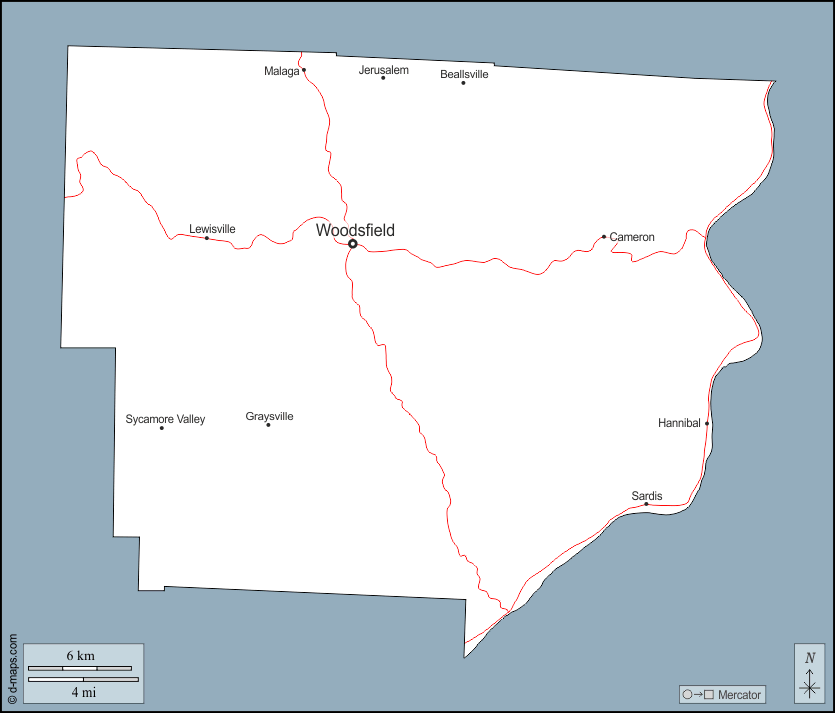 d-maps > संयुक्त राज्य > ओहायो > मुनरो > बाह्यरेखा, मुख्य शहरों, सड़कों, नाम