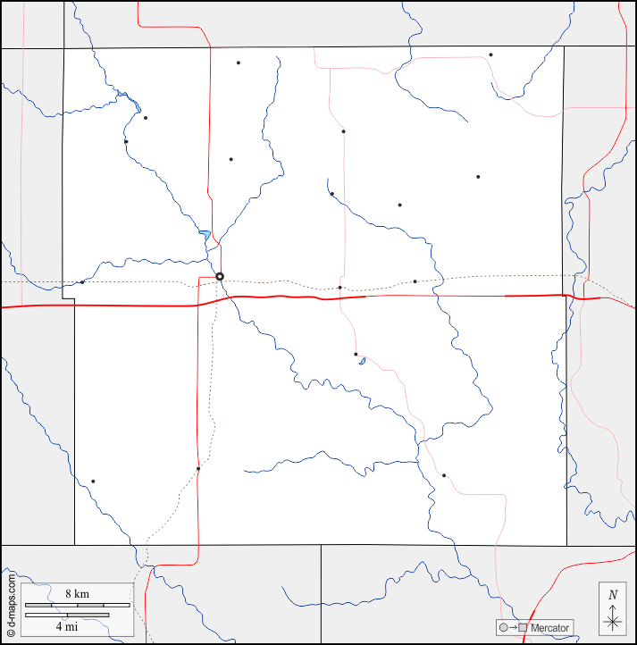 d-maps > संयुक्त राज्य > आयोवा > डेलावेयर > सीमाओं, जल-सर्वेक्षण, मुख्य शहरों, सड़कों