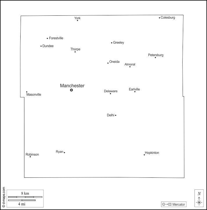 d-maps > संयुक्त राज्य > आयोवा > डेलावेयर > बाह्यरेखा, मुख्य शहरों, नाम, सफेद