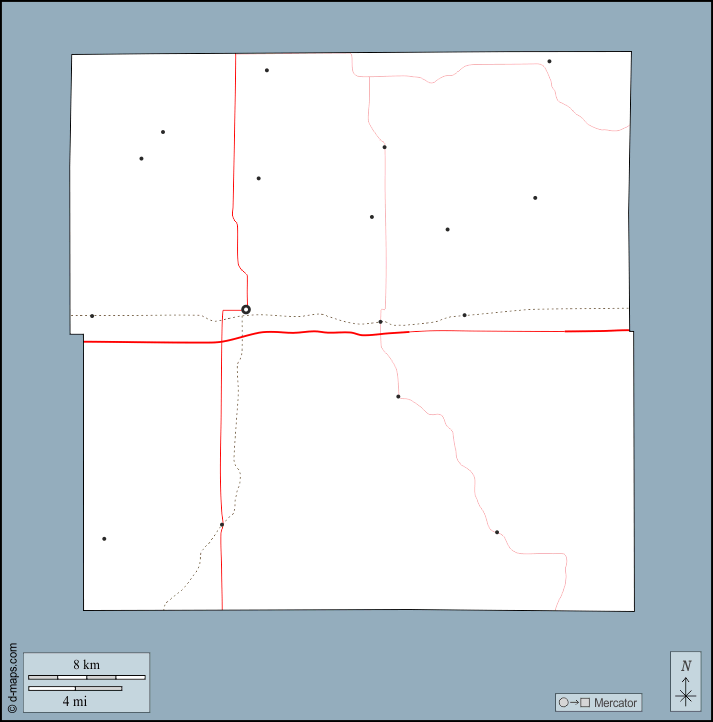 d-maps > संयुक्त राज्य > आयोवा > डेलावेयर > बाह्यरेखा, मुख्य शहरों, सड़कों