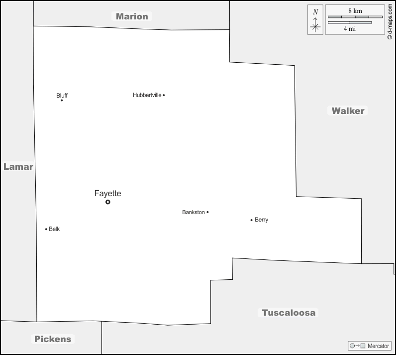 d-maps > संयुक्त राज्य > अलबामा > अलबामा पश्चिम > सीमाओं, मुख्य शहरों, नाम