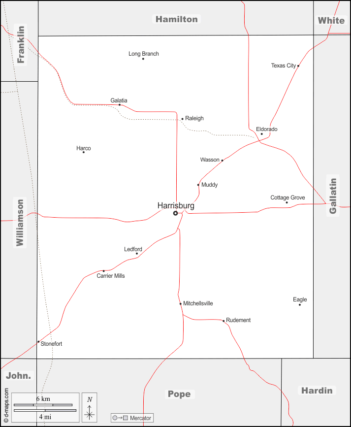 d-maps > संयुक्त राज्य > इलिनॉय > खारा > सीमाओं, मुख्य शहरों, सड़कों, नाम