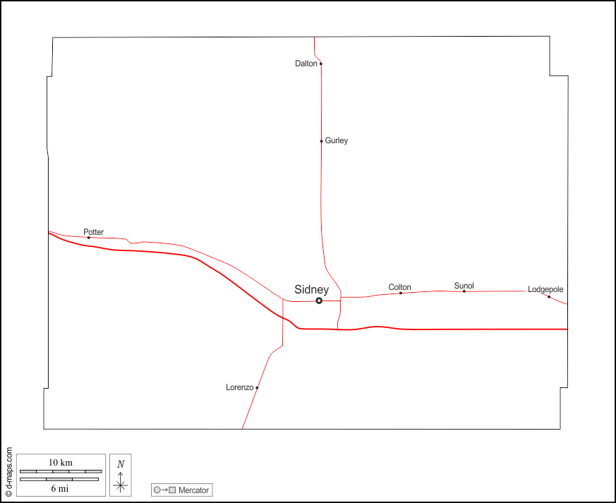 d-maps > संयुक्त राज्य > नेब्रास्का > शायेन > बाह्यरेखा, मुख्य शहरों, सड़कों, नाम, सफेद