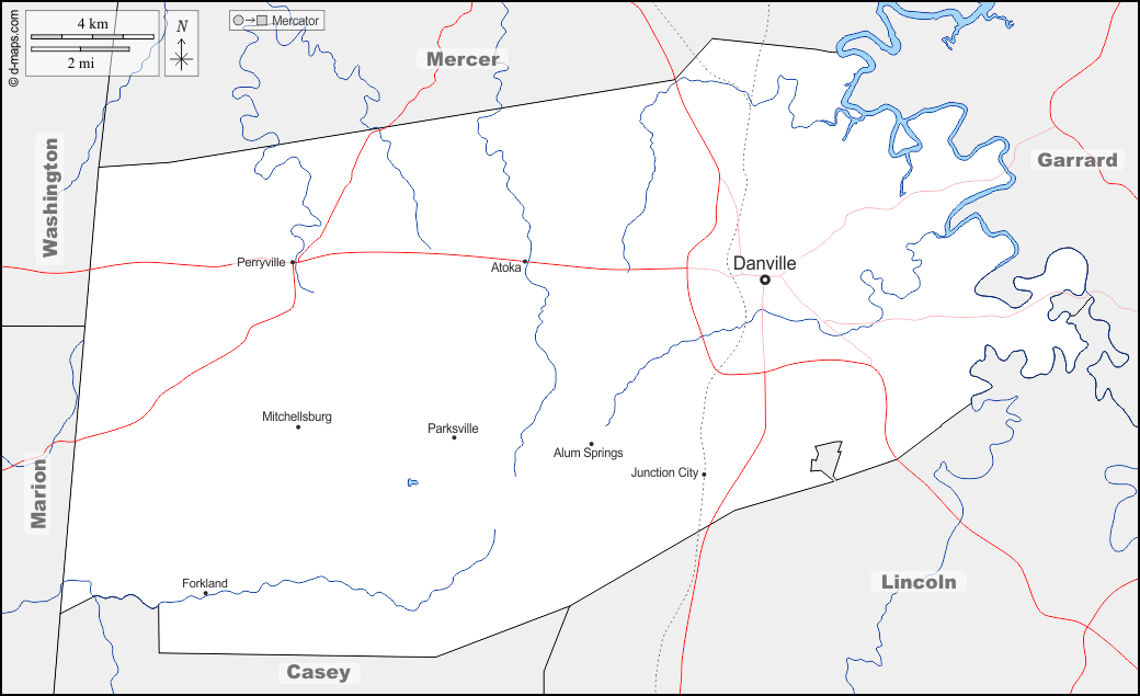 d-maps > संयुक्त राज्य > केंटुकी > बॉयल > सीमाओं, जल-सर्वेक्षण, मुख्य शहरों, सड़कों, नाम