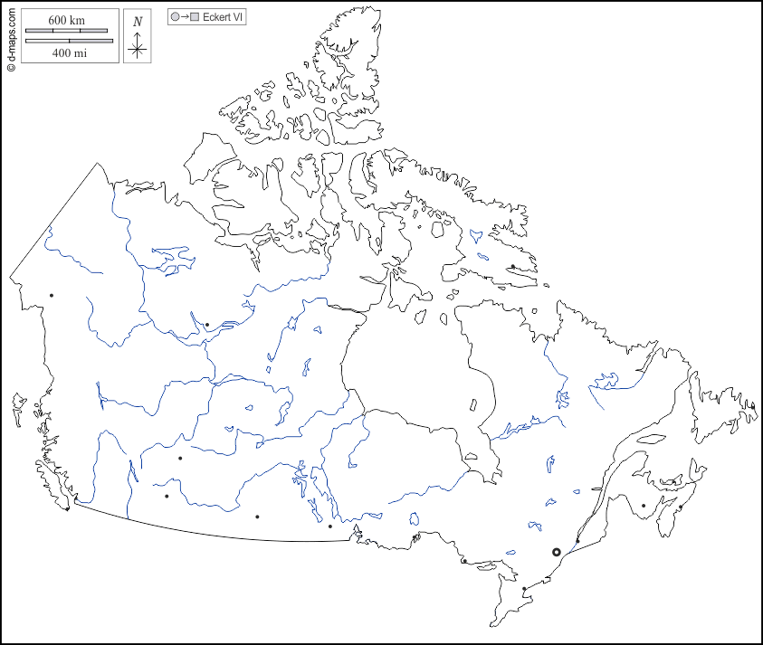 d-maps > महाअमेरिका > कनाडा > कनाडा > बाह्यरेखा, जल-सर्वेक्षण, मुख्य शहरों, सफेद