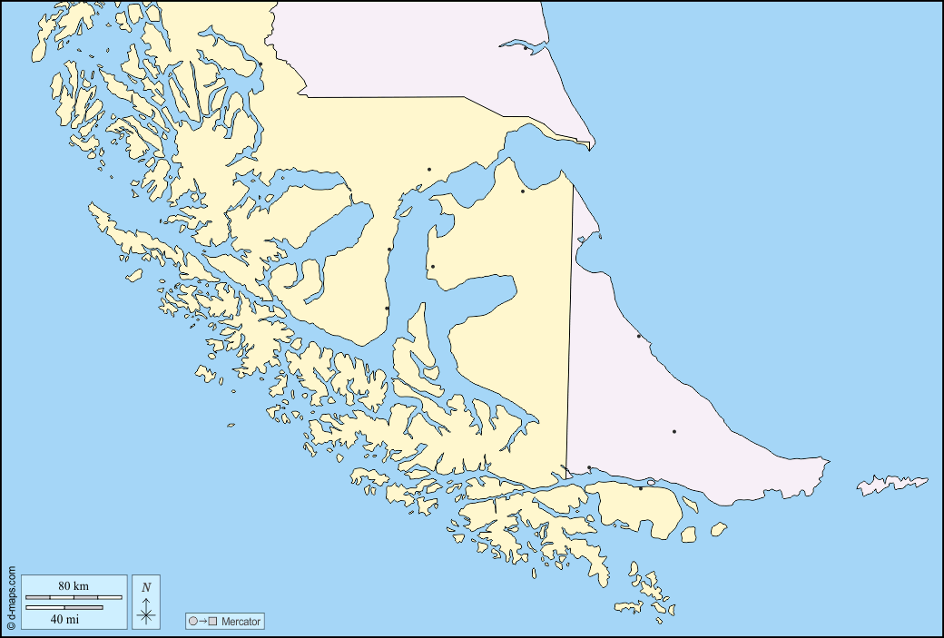 d-maps > महाअमेरिका > तिएर्रा देल फ़ुएगो > क्षेत्रों, मुख्य शहरों, रंग