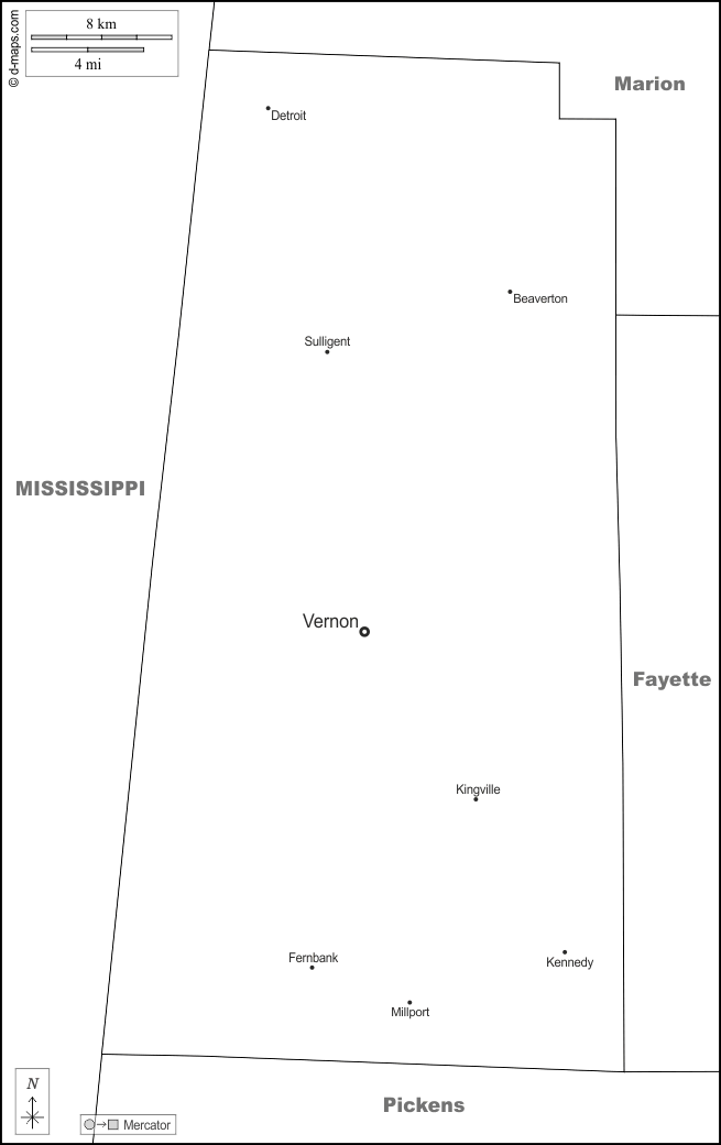 d-maps > संयुक्त राज्य > अलबामा > लैमर > सीमाओं, मुख्य शहरों, नाम, सफेद