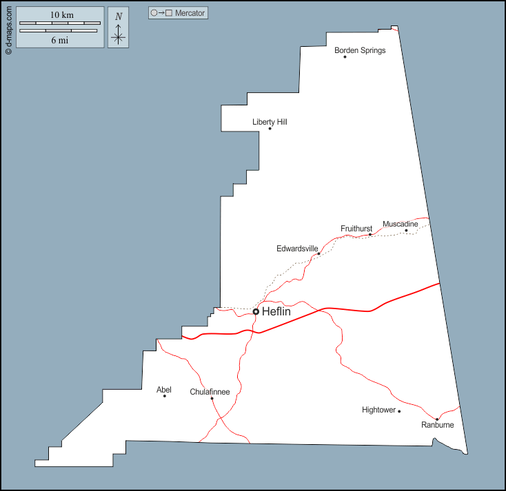 d-maps > संयुक्त राज्य > अलबामा > अलबामा पूर्व > बाह्यरेखा, मुख्य शहरों, सड़कों, नाम
