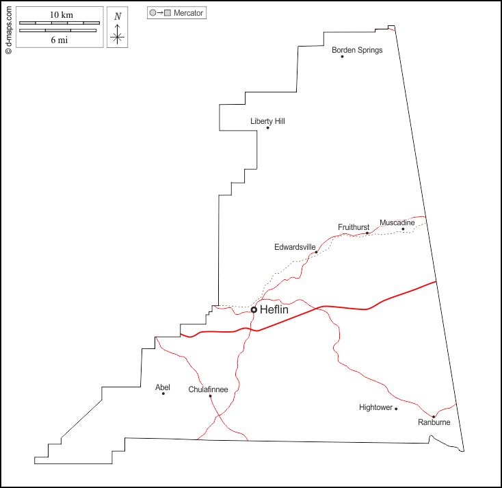 d-maps > संयुक्त राज्य > अलबामा > अलबामा पूर्व > बाह्यरेखा, मुख्य शहरों, सड़कों, नाम, सफेद