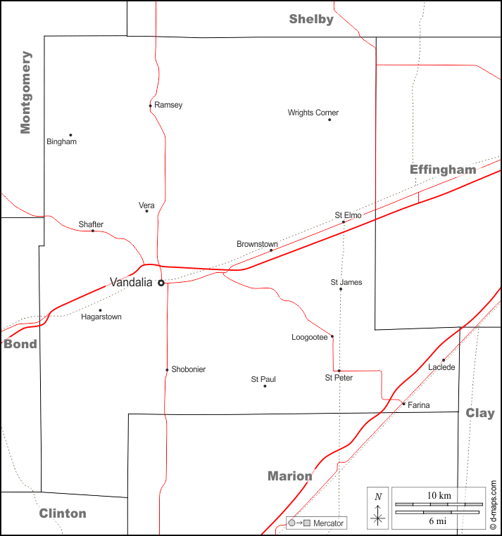 d-maps > संयुक्त राज्य > इलिनॉय > फयेट > सीमाओं, मुख्य शहरों, सड़कों, नाम, सफेद