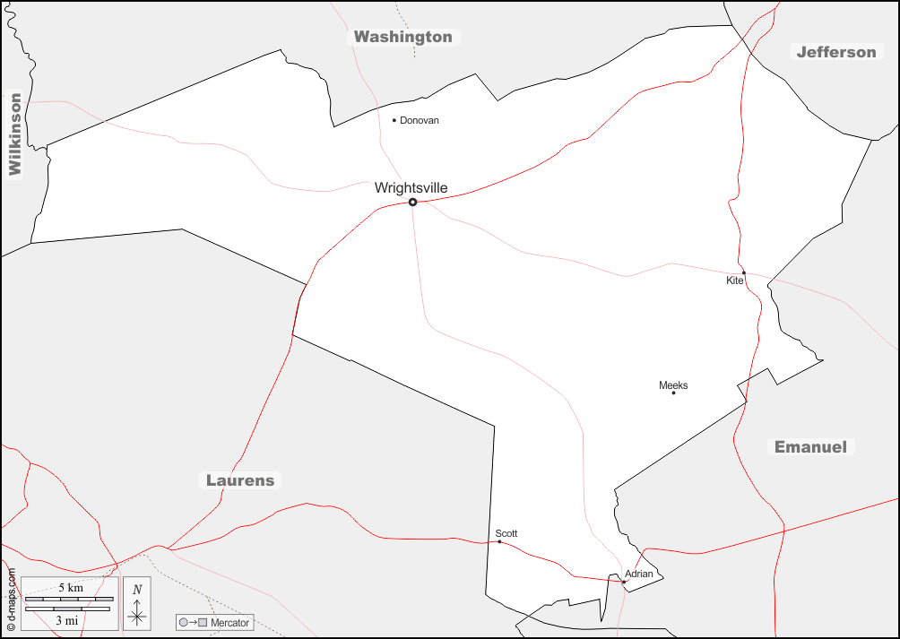 d-maps > संयुक्त राज्य > जॉर्जिया > जॉनसन > सीमाओं, मुख्य शहरों, सड़कों, नाम
