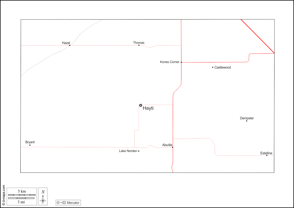 d-maps > संयुक्त राज्य > साउथ डकोटा > दक्षिण डकोटा एसट > बाह्यरेखा, मुख्य शहरों, सड़कों, नाम, सफेद