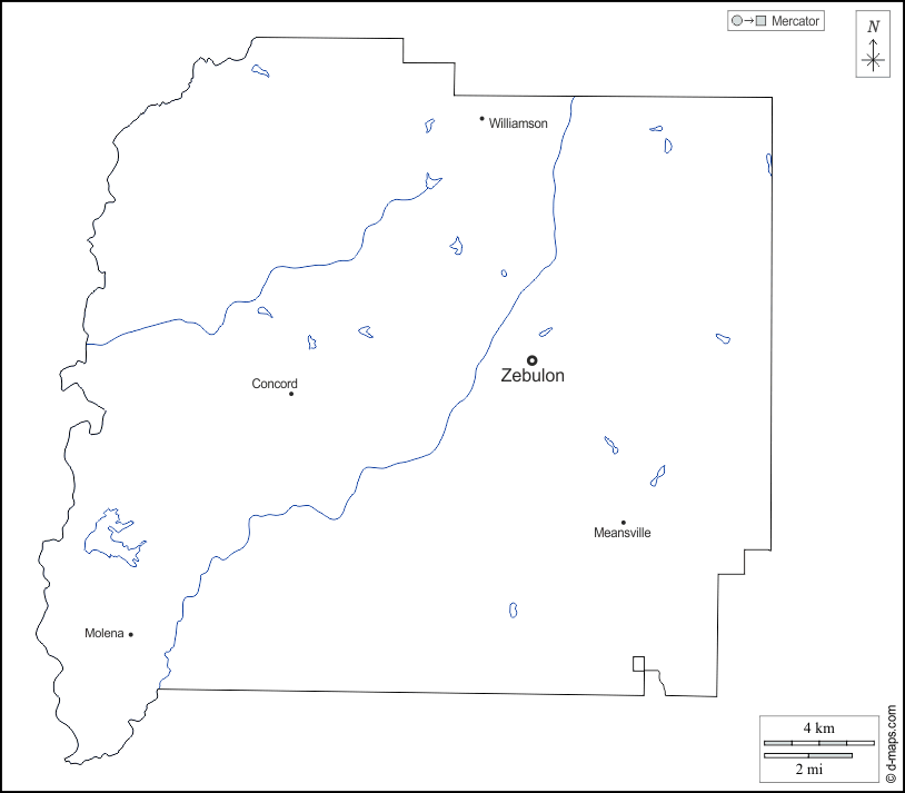 d-maps > संयुक्त राज्य > जॉर्जिया > पाइक > बाह्यरेखा, जल-सर्वेक्षण, मुख्य शहरों, नाम, सफेद