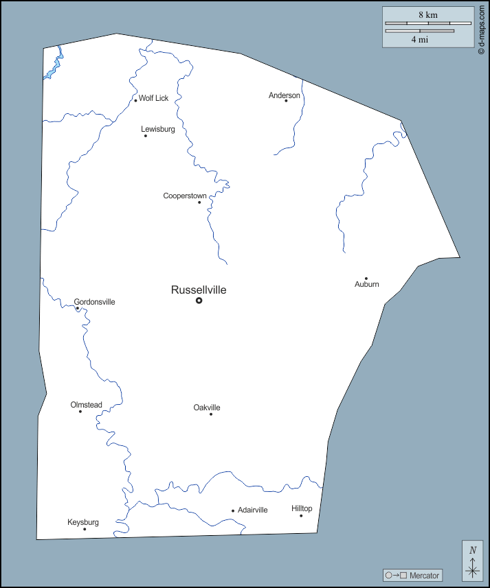 d-maps > संयुक्त राज्य > केंटुकी > लोगन > बाह्यरेखा, जल-सर्वेक्षण, मुख्य शहरों, नाम