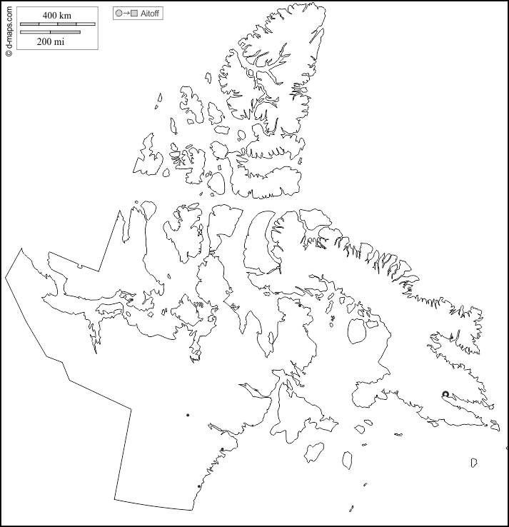 d-maps > महाअमेरिका > कनाडा > नुनावुत > बाह्यरेखा, मुख्य शहरों, सफेद