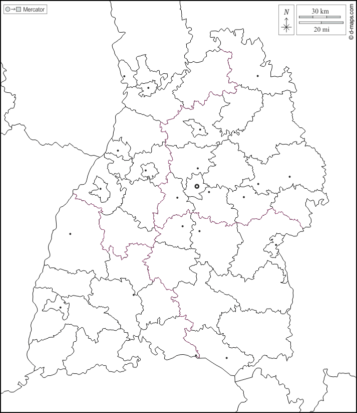 d-maps > यूरोप > जर्मनी > बाडेन-वुर्टेमबर्ग राज्य > सीमाओं, जिलों, मुख्य शहरों, सफेद