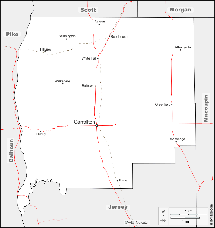 d-maps > संयुक्त राज्य > इलिनॉय > ग्रीन > सीमाओं, मुख्य शहरों, सड़कों, नाम