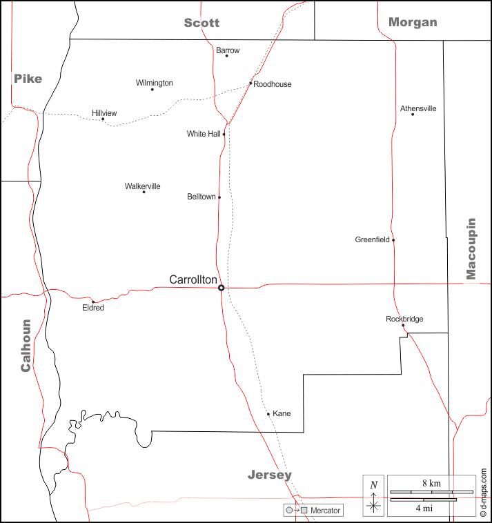 d-maps > संयुक्त राज्य > इलिनॉय > ग्रीन > सीमाओं, मुख्य शहरों, सड़कों, नाम, सफेद