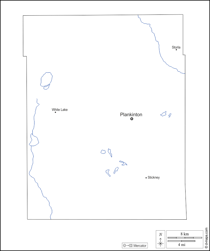 d-maps > संयुक्त राज्य > साउथ डकोटा > अरोड़ा > बाह्यरेखा, जल-सर्वेक्षण, मुख्य शहरों, नाम, सफेद