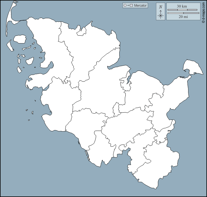 d-maps > यूरोप > जर्मनी > श्लेस्विग-होल्स्टीन राज्य > बाह्यरेखा, जिलों