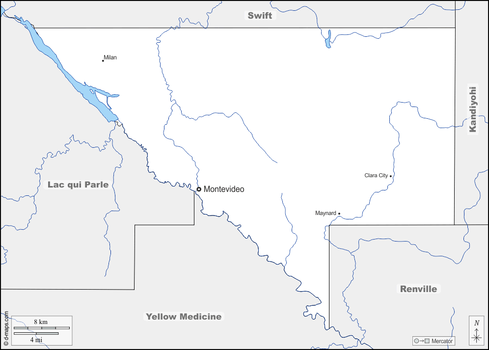 d-maps > संयुक्त राज्य > मिनेसोटा > चिपपेवा > सीमाओं, जल-सर्वेक्षण, मुख्य शहरों, नाम